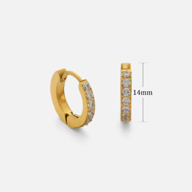 Sleek gold hoops lined with clear crystals — minimal, radiant, and endlessly versatile.