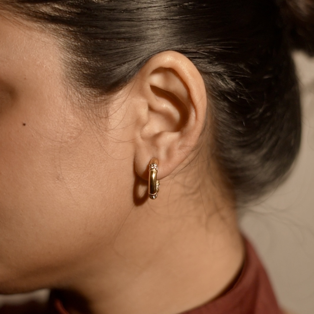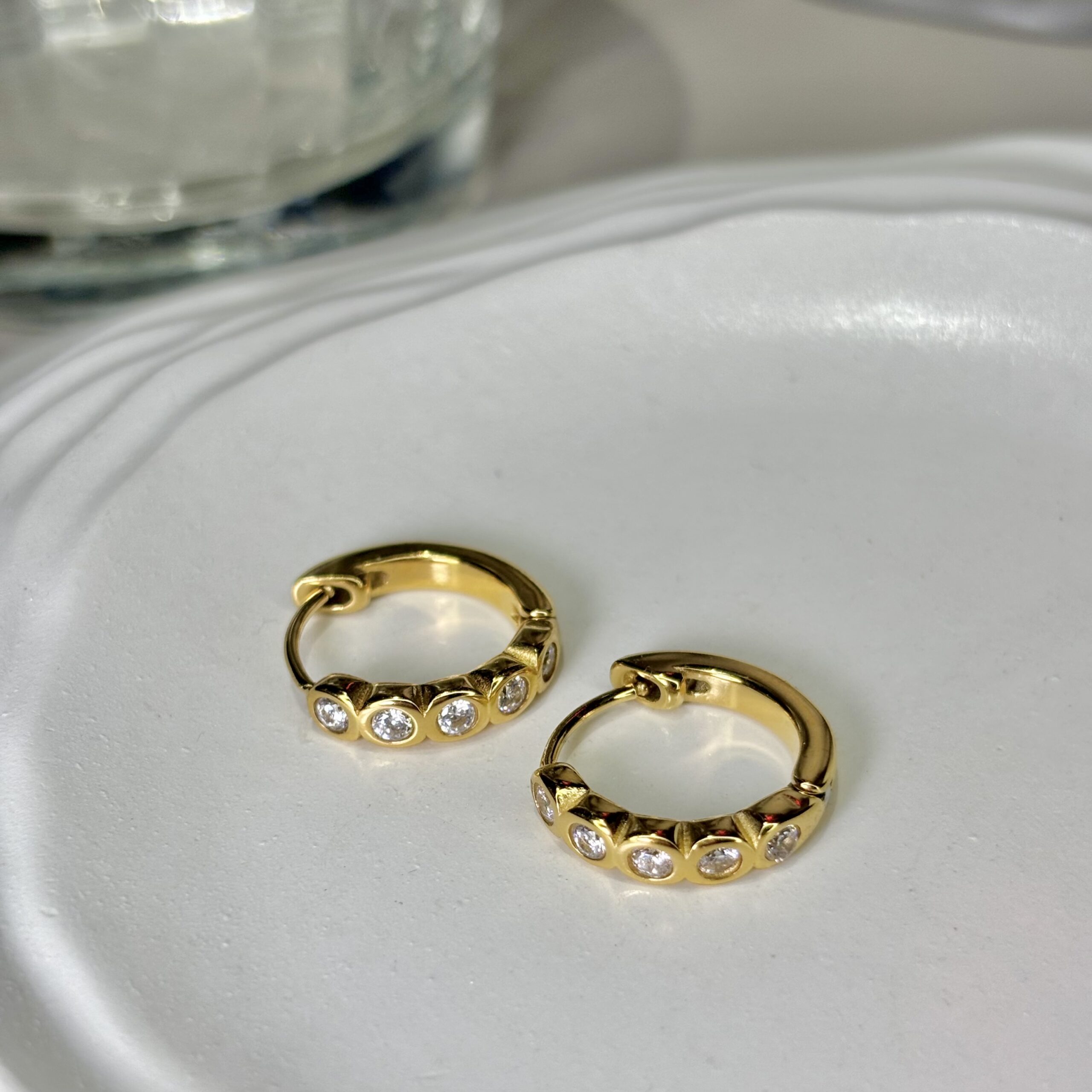 Timeless gold hoops with bezel zircon crystals – minimal, modern, endlessly glowing. Gold hoops with bezel crystals — minimal, modern, endlessly glowing.