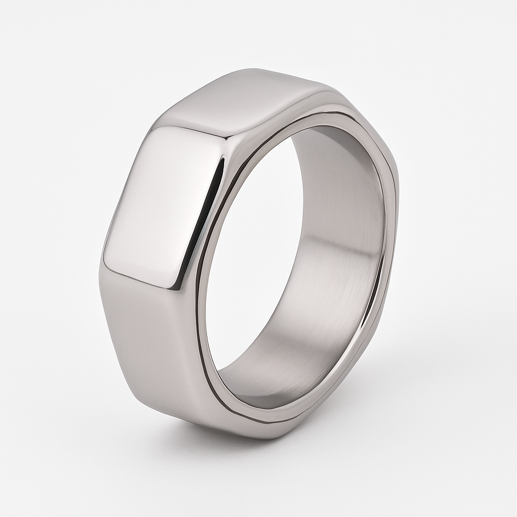 A sculpted ring with smooth edges and a sleek silhouette. Sharp and unapologetically modern.