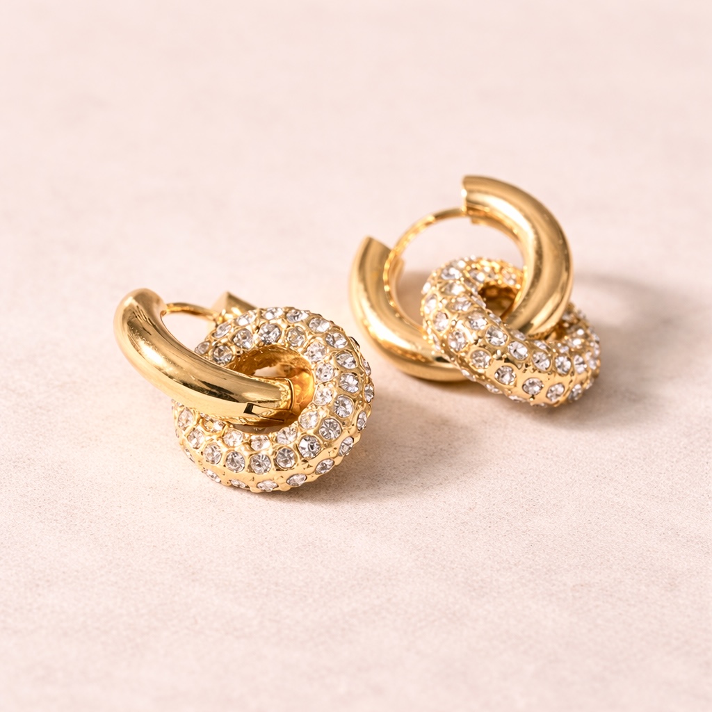 Bold gold hoops wrapped in pavé sparkle.