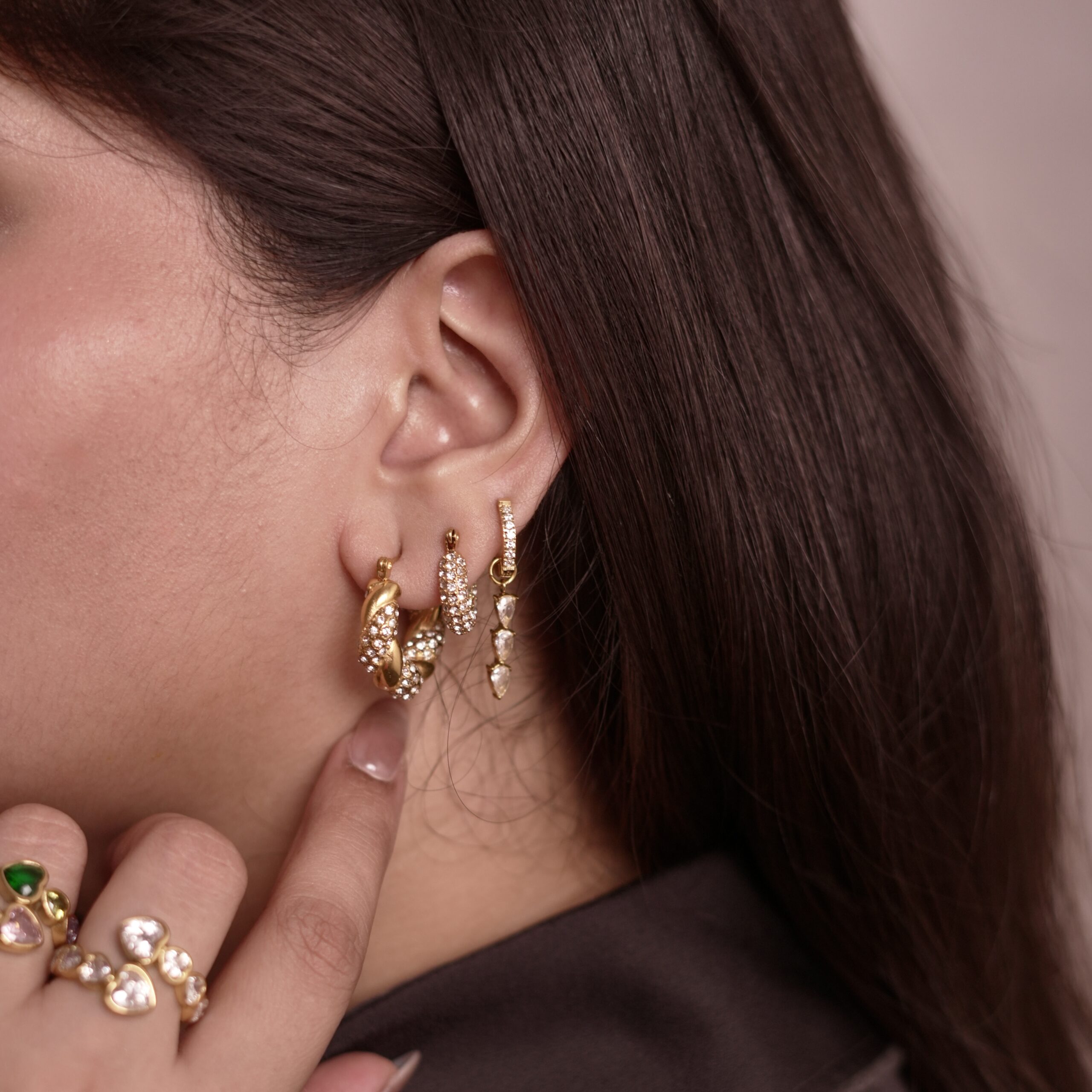 A burst of brilliance – gold toned hoops shimmering with crystal pavé, like a miniature supernova.