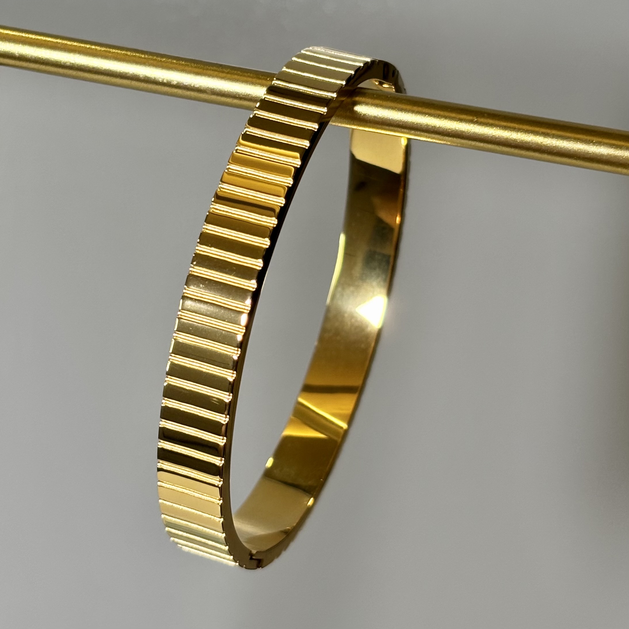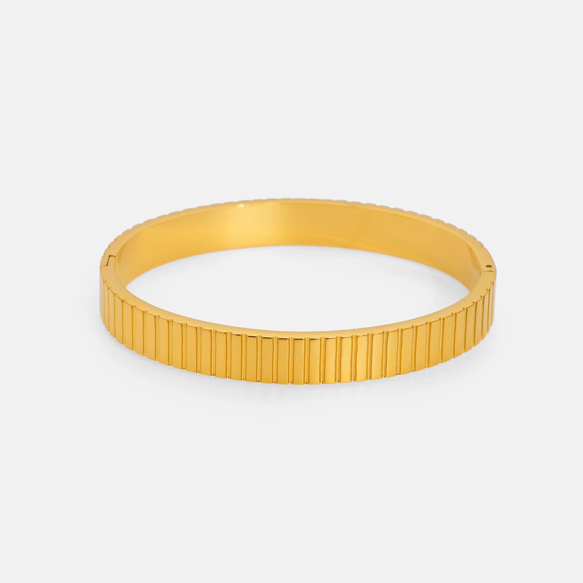 Gold bangle cuff with ridged texture — sleek, modern and powerfully minimal.