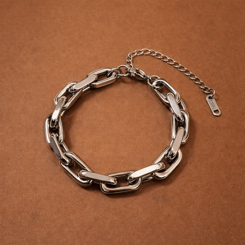 Bold silver link bracelet with oversized polished chains.