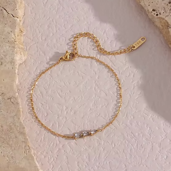 A dainty chain bracelet with three tiny stones to anchor your light. Minimal. Refined. Endlessly wearable.